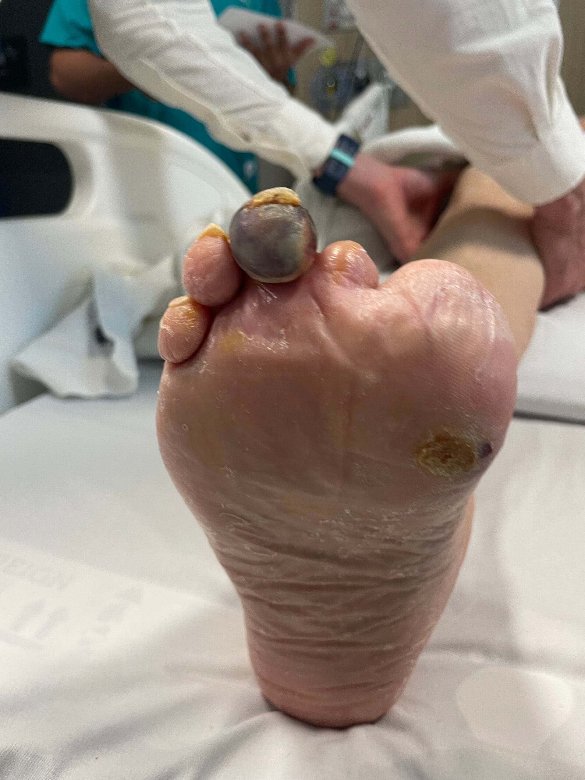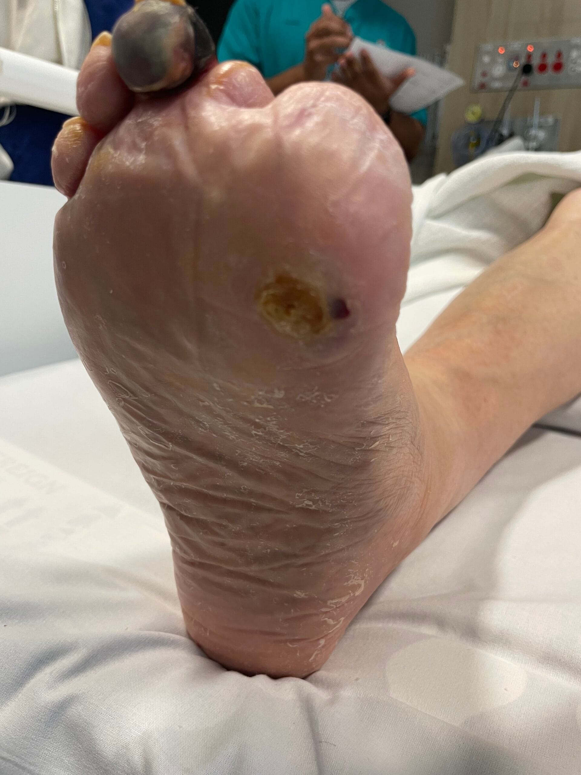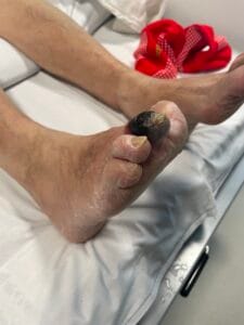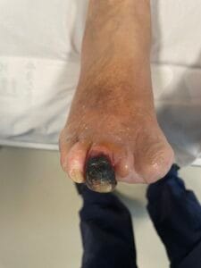 Ischaemic Toe (Arterial Disease) – 3rd toe with first metatarsal fat pad wound