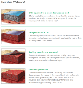 Reduce the chances of infection in the peri-wound whilst maximising the granulation tissue integrating with the BTM