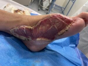 By using a Vac machine the patient's dressing is slim line and a 3m-KCI Bridge dressing can be used if footwear is required to be worn.