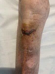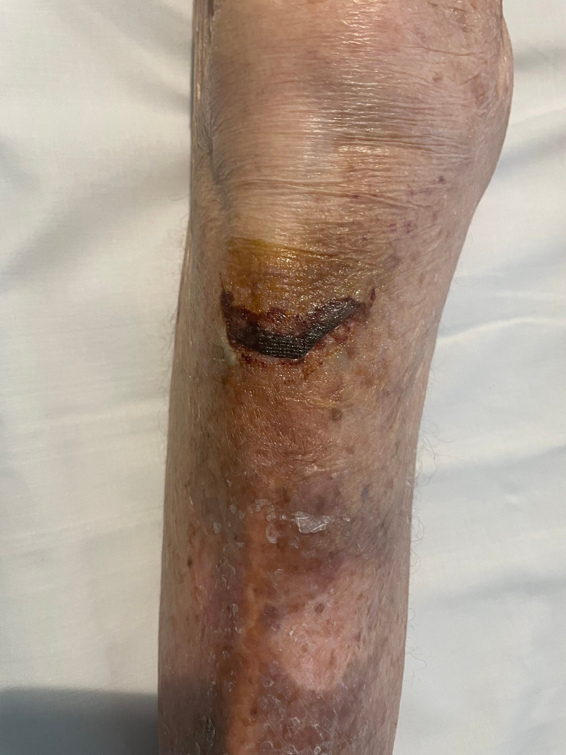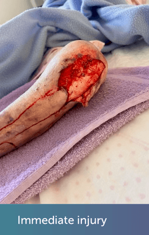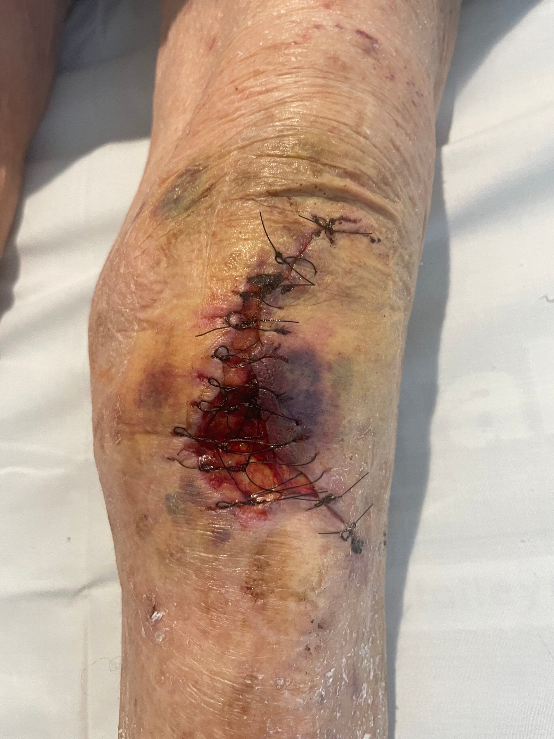 Large skin tear requiring suture