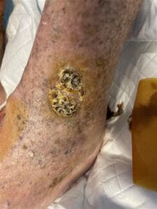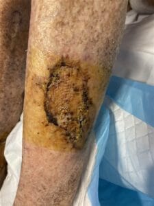 When an old skin graft is not maintained daily it can form a rigid 'plate' of skin that can not be manipulated like regular skin