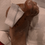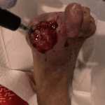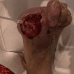 This is where you might use a foam dressing however for this patient we continued to use the aqaucel due to the atraumatic release of the dressing.