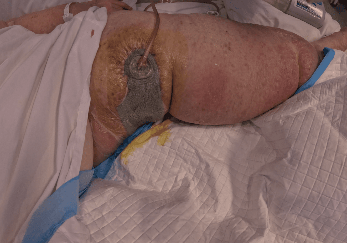 Once you turn on the vac machine massage around the edges of the vac foam and wound edges to help seal the dressing.