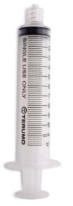 Do NOT use a slip syringe as when you apply pressure to flush out the wound with a catheter the catheter will dislodge under the pressure