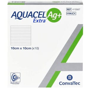 Aquacel Extra is a highly absorbent, silver impregnated, sterile, non-woven wound dressing that employs Hydrofiber® technology. It is designed to manage high-exuding wounds by absorbing wound fluid and converting it into a soft gel. This process helps maintain a moist wound environment, supporting the body’s natural healing process, while facilitating the autolytic debridement of non-viable tissue without harming newly formed tissue.