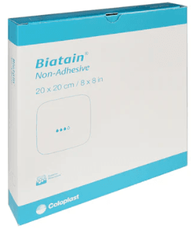 Words facing clinician eg 'Biatain facing you'