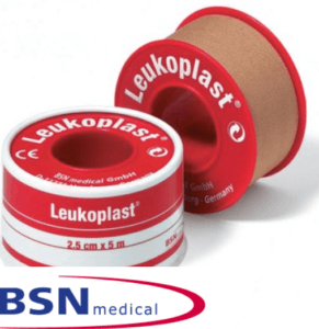 TAPE, ADHESIVE, RIGID, 2.5CM X 9.2M, WATERPROOF, ZINC OXIDE, TAN (LEUKOPLAST STANDARD)