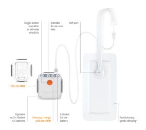 - Not suitable for moderate to high exudating wounds – Once the exudate reached the track pad on the dressing the active suction stops