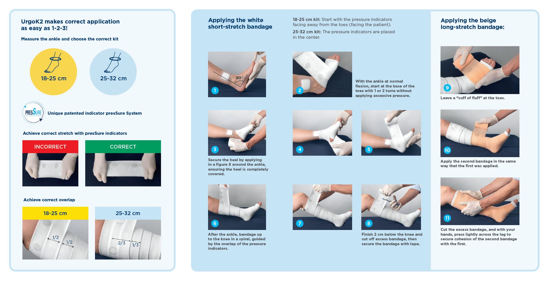 A multicomponent compression bandage that will guaranteed approx. 20mmhg at the ankle on application. First choice in placing light compression on patient’s whilst waiting formailsed Ankle Brachial Index (ABI) or Toe Brachial Pressures (TBI).