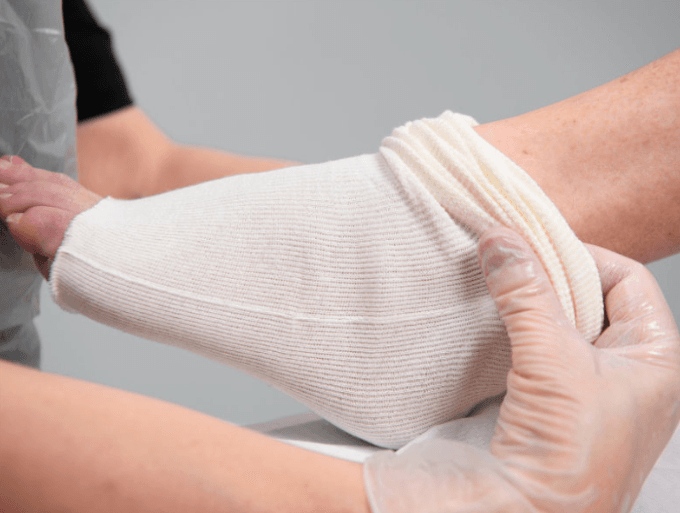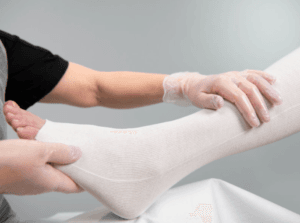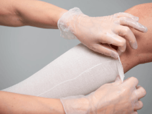 A sock impregnated with zinc cream used where chronic venous insufficiency exist can be used as a primary contact layer under compression bandaging or hosiery
